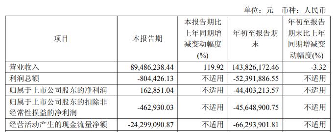 中国经济网北京11月7日讯 成都立航科技股份有限公司(证券代码:603261,证券简称:*ST立航)近日发布的2025年第三季度报告显示,今年前三季度,公司实现营业总收入1.44亿元,同比下降3.32%;归属于上市公司股东的净利润-4440.32万元,上年同期-3396.01万元;归属于上市公司股东的扣除非经常性损益的净利润-4564.89万元,上年同期-3698.11万元;经营活动产生的现金流量净额为-6629.39万元,上年同期为-5290.23万元。